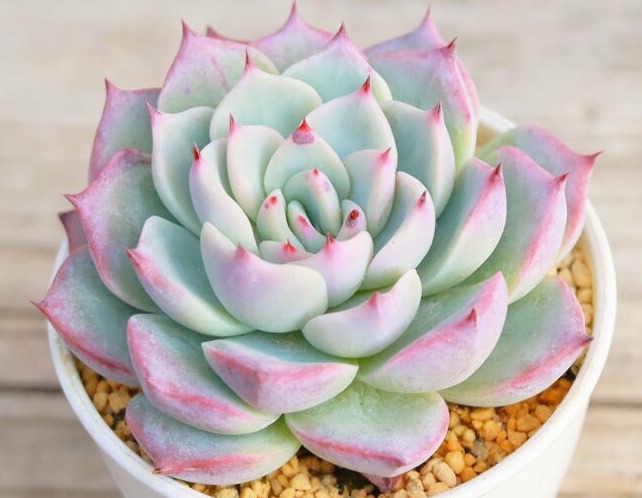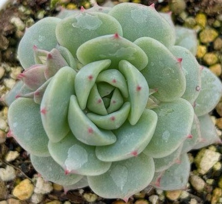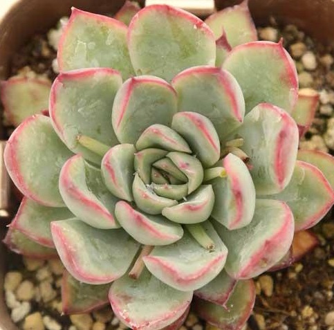 • 淡いピンクと青みがかった葉色が魅力的な、ロゼット型のエケベリアです。