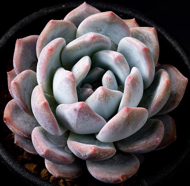 • 葉の表面が白い粉(エケベリアにとっての紫外線防止剤)で覆われており、神秘的な雰囲気を持っています。